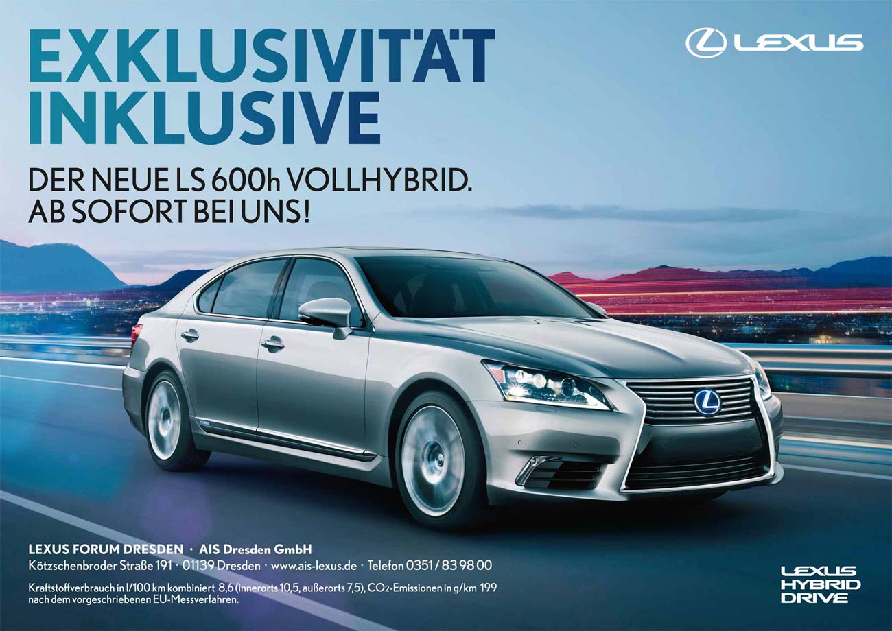 CD-konformes Layout inkl.Text für Großflächenplakat zur Markteinführung des Lexus LS600h.